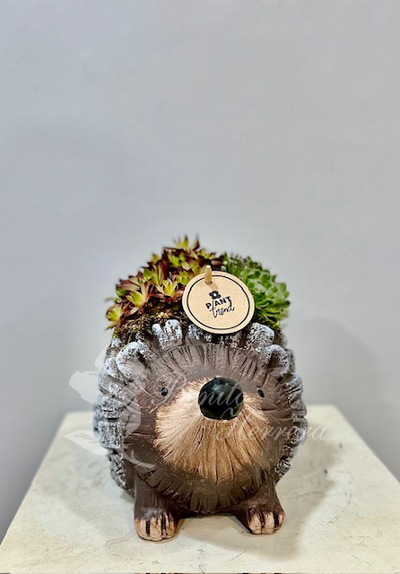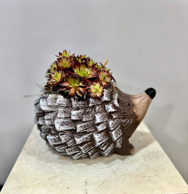 Erizo con plantas suculentas naturales, 25cm (medidas aproximadas).